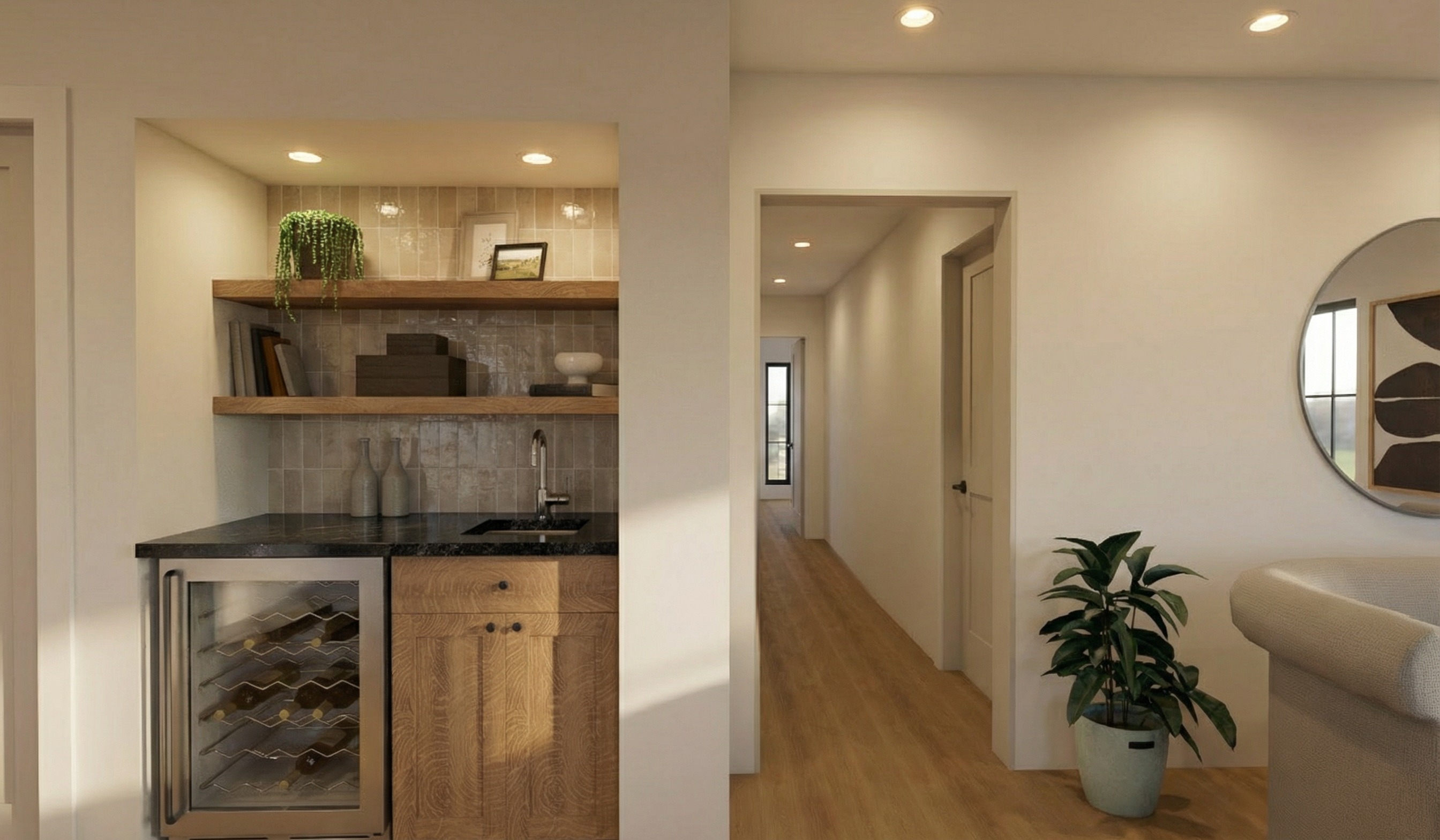 change the cabinet so that it s painted the color in the reference image everything else should stay exactly the same