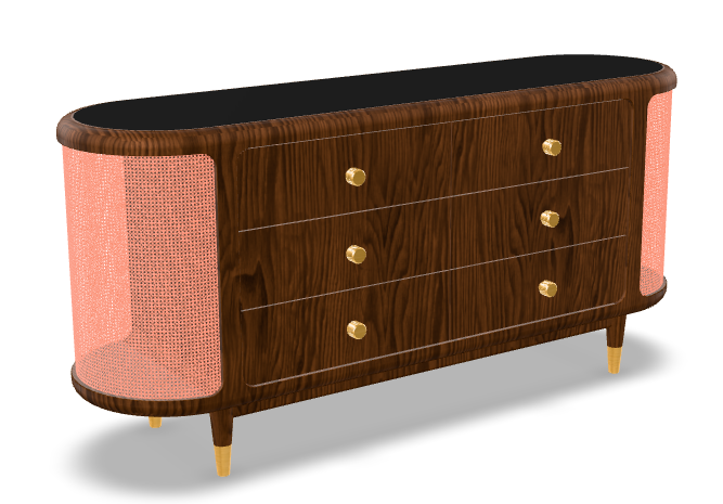 accent raffia weaving cabinet drawers wooden spool legs finish