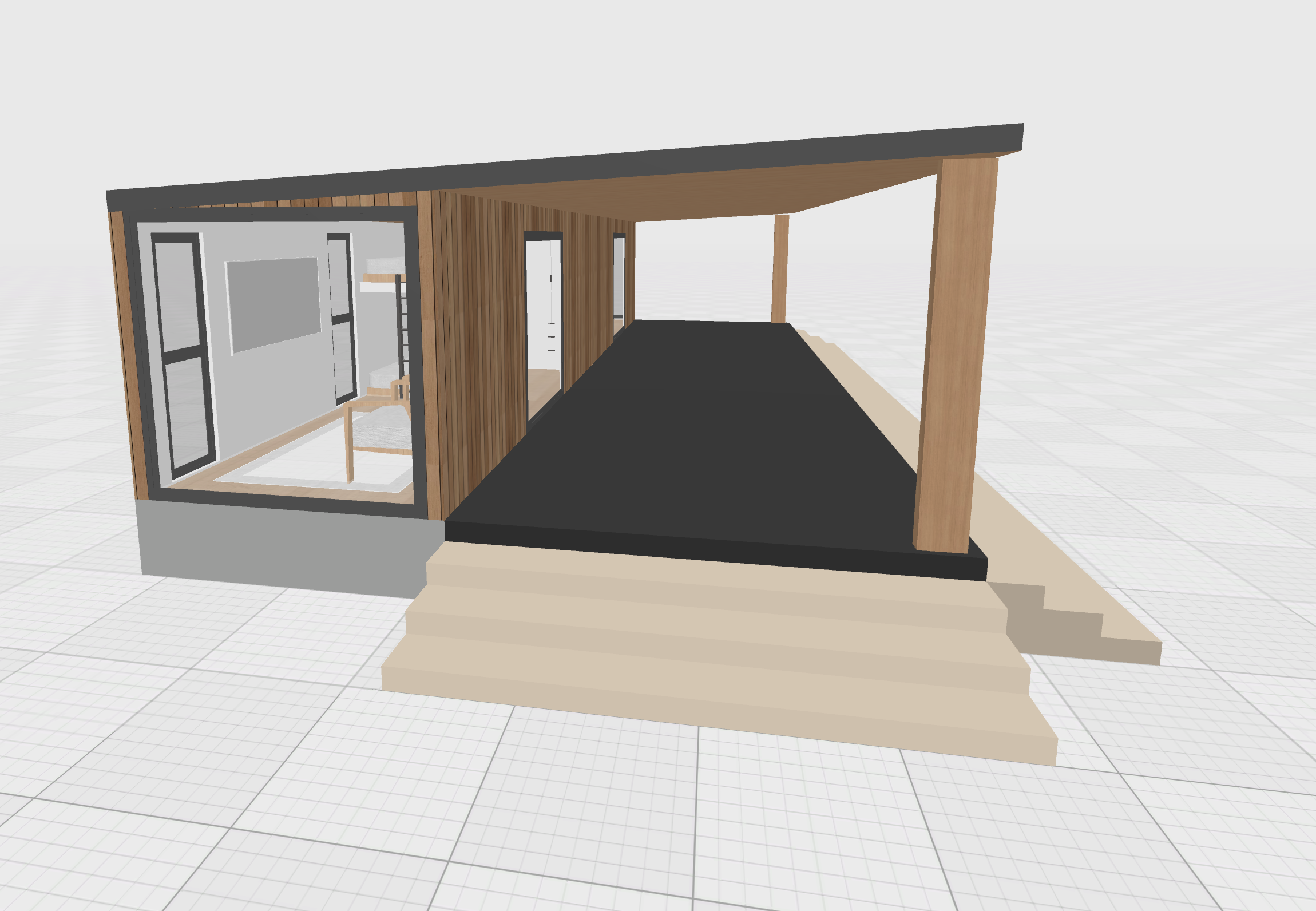 exterior shot add doors onto porch area and make realistic in tropical garden