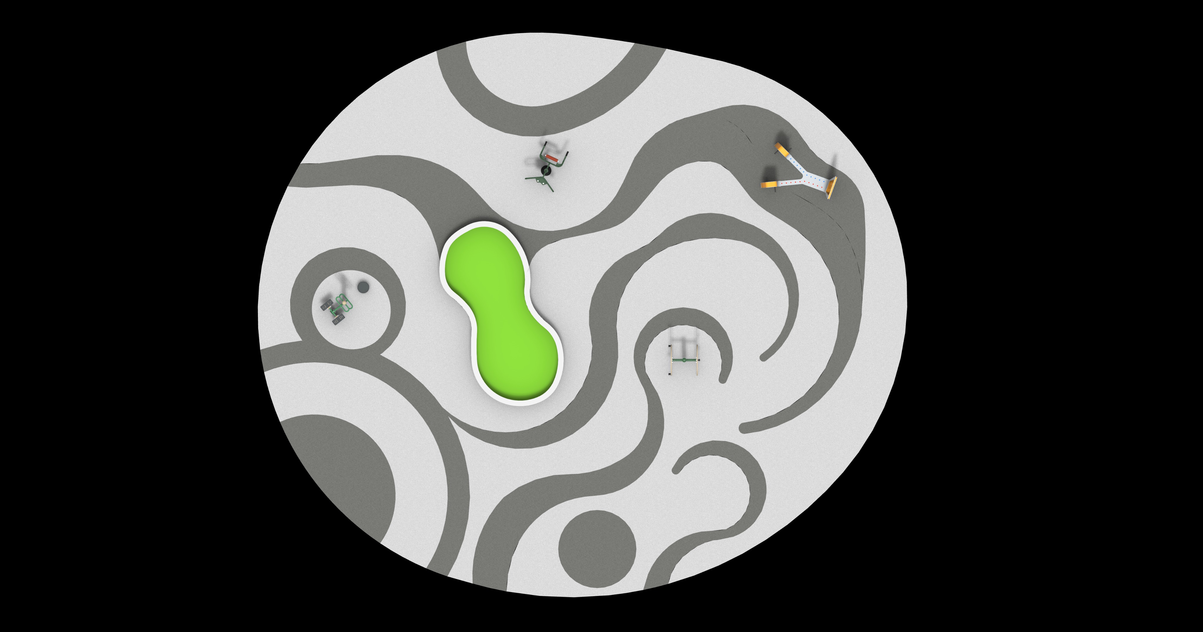 do not change the original fitness layout or angles add variety short shrubs in the middle of green colour