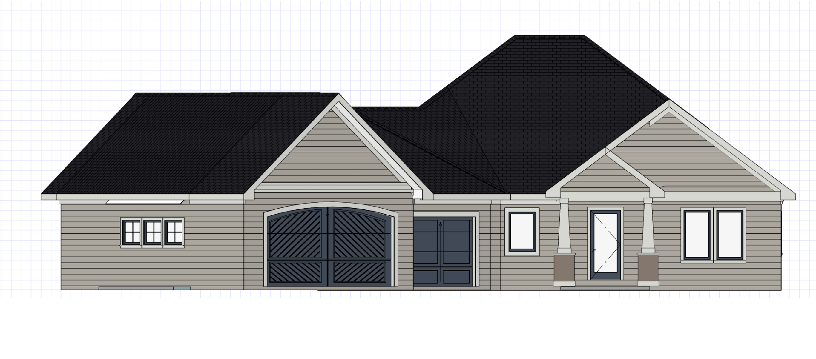 exterior shot please note the garages are angled off as a lazy l from the main portion of the house please show different texture options and shake columns for front entry