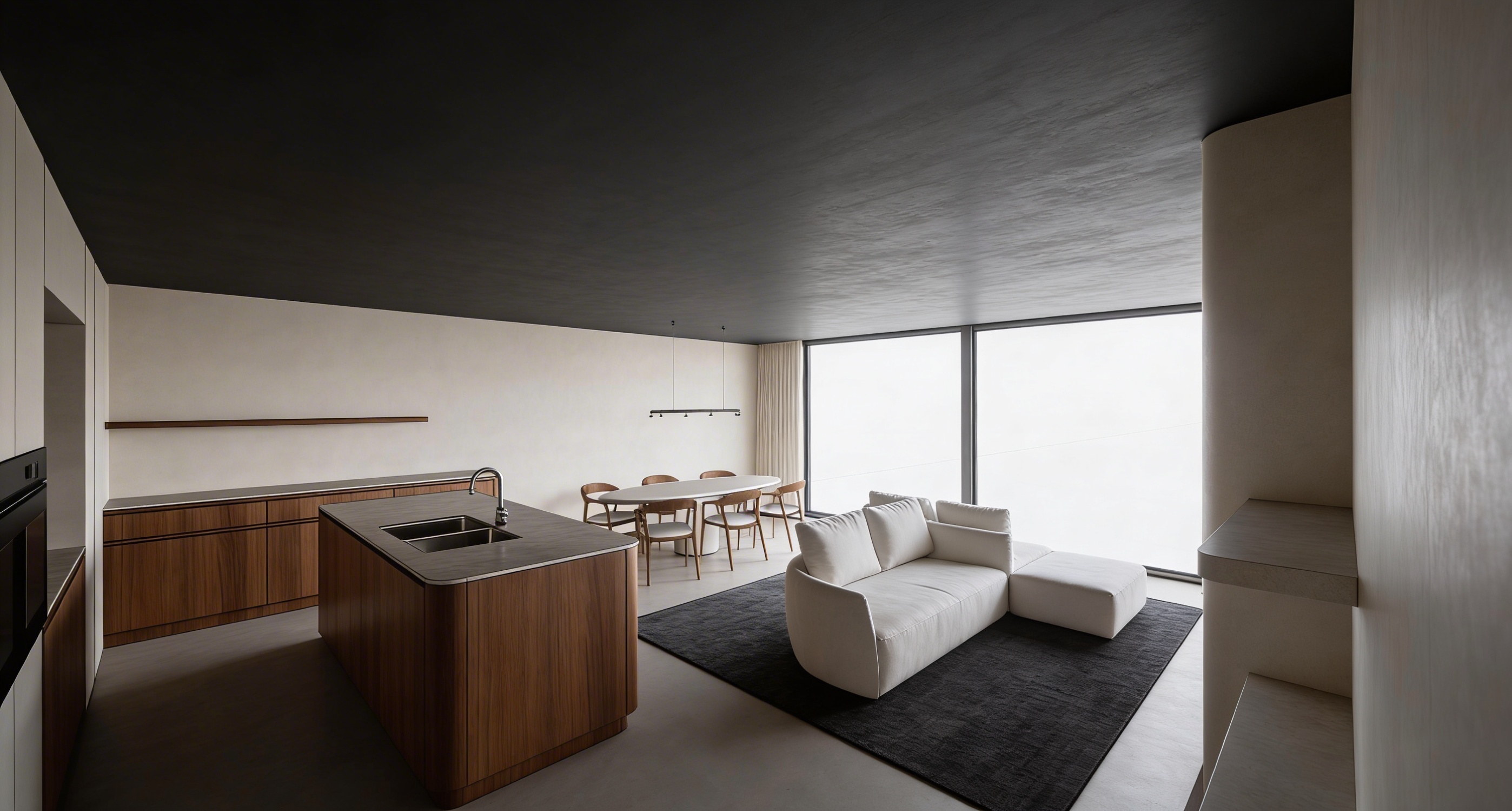 camera di hotel con armadio in rovere naturale fianco armadio con specchio ambrato angolare e cornice in legno rovere naturale nel lato sinistro dello specchio angolare e nella parte alta dell armadio a ridosso della parete abbiamo una strip led la strip led emette luce sulla parete di sinistra dello specchio ambrato e sulla parte alta dell armadio a destra tavolino con piano in travertino e bordo in ottone a parete abbiamo una carta da parati chiara con leggero effetto tessuto fai entrare della luce naturale dalla finestra alle spalle dell inquadratura