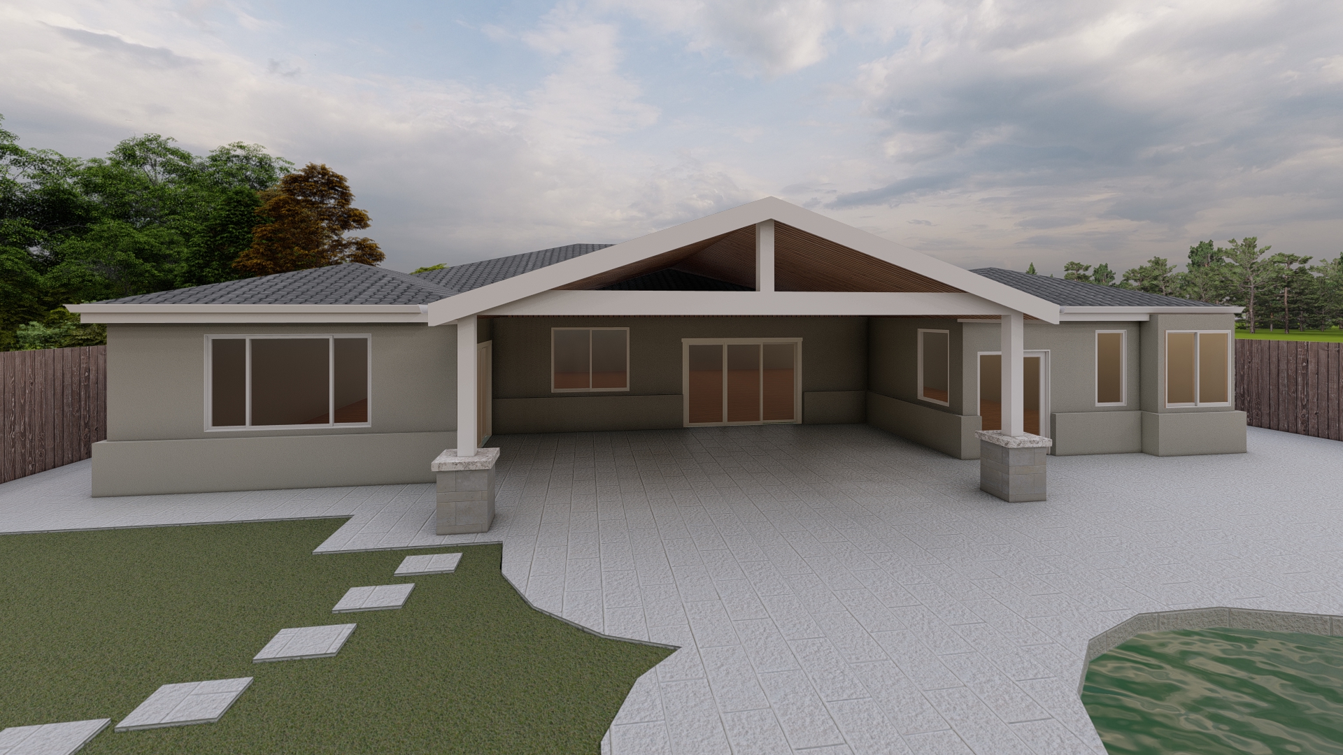 make patio cover in wood and add a outdoor table and chairs and outdoor seating under the patio cover add decor and lighting to the home and patio cover
