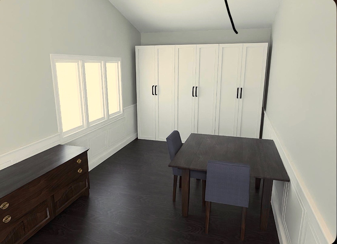 create storage for kids playroom to easily convert to dining room when needed replace back wall cabinets with better idea more decorative and functional