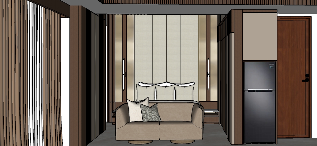 render senyata mungkin jangan ubah bentuk warna kayu dan material lantai marble cream