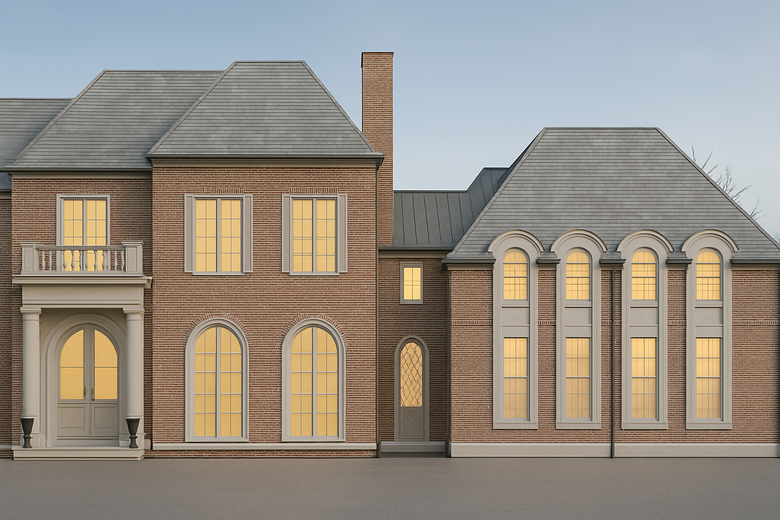 a modern rustic man cave games room the room contains a golf simulator with a hyper realistic grass floor do not add lighting in simulator area do not show a golf ball or hole in the green floor black fabric walls and roof with the back having a high definition projector image of the game display the sectional sofa is ultra realistic medium grey uber comfy leather like vinyl with complimenting throw cushions and blanket decor a coffee table shuffleboard below the tv s nhl super chexx pro bubble hockey edmonton oilers black version including a black base and a oilers logo on the base 3 tv s on the feature tv wall the top tv is displaying a high definition blue jays baseball game the bottom tv is displaying a high definition edmonton oilers hockey game the large tv to the right is showing a high definition golf simulator game matching the projector image in the golf simulator all tv s are softly backlit around their perimeter the entire tv wall with 3 tv s is finished with horizontal medium large planks of rustic reclaimed wood do not backlight the rustic tv wall the bottom 42 of all exterior walls are finished in galvanized vertical corrugated metal capped at the top with a small wood sill that has led strip lighting underneath providing a soft lighting onto the corrugated metal no lighting at the bottom of the corrugated metal soft natural light coming through the windows and pot lights throughout providing gentle ambient soft mood lighting make all the wood for the table coffee table chairs and corrugated steel trim a medium dark wood grained birch the floor should be a medium dark gray cut and polished concrete floor do not add windows preserve the original image as a background plate keep everything else unchanged forbid geometry reconstruction