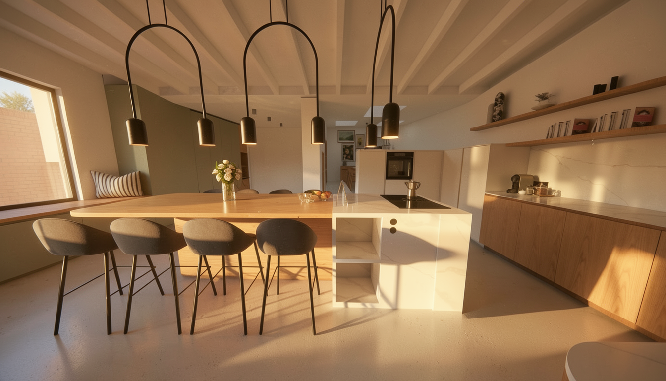 turn the attached sketchup rendering into a photoreal rendering of the house keep geometry massing window placement and details the same high fidelity and representation is important this should be a daylight with slight overcast cloudy afternoon rendering of the house the treat the satellite background image below as the source for context adding detail as appropriate this is an infill site in downtown raleigh and the adjacent white boxes are single story houses with landscaped yards the yard should be landscaped with grass and shrubs with trees beyond