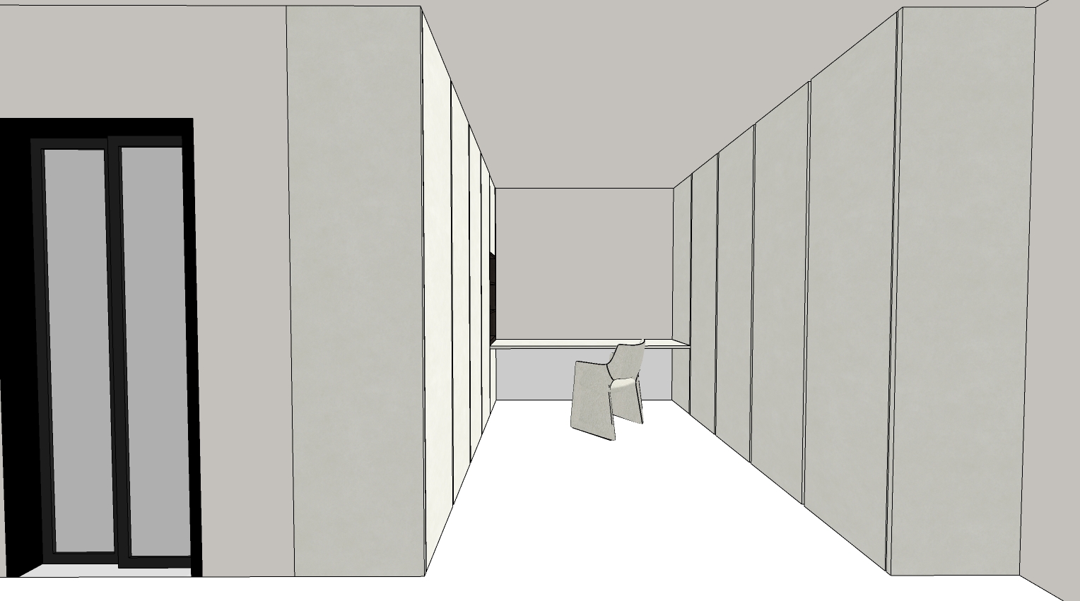 add some ceiling white down lights a small frame vanity mirror and some cosmetic products on the table floor tiles should be 60x60 matte biege wall paint should be creme white