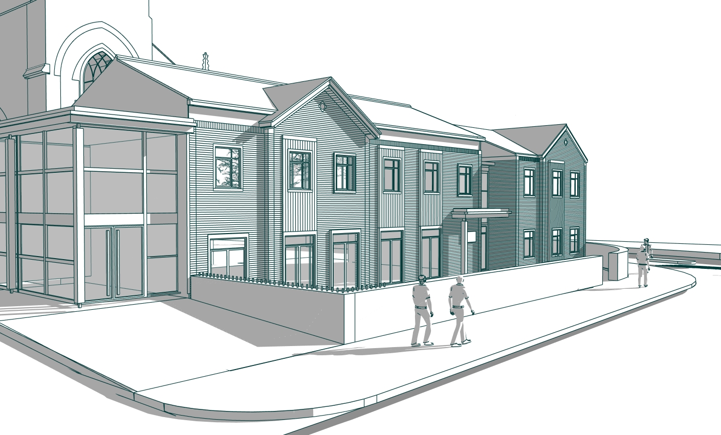 render this sketchup image red brick walls slate roof grey natural stone wall in front