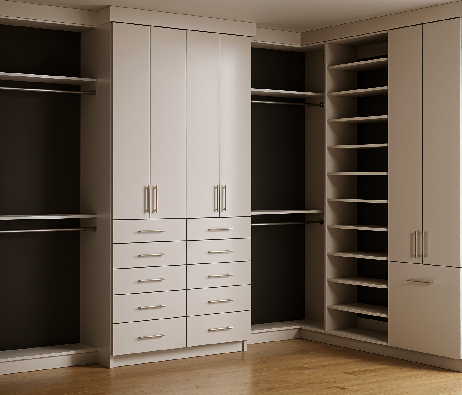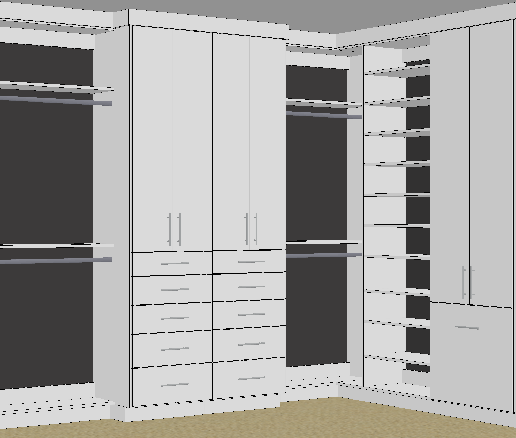 make floor to be carpet add clothes to the closet rods and shoes on the shelves remove puck light build cabinets to ceiling