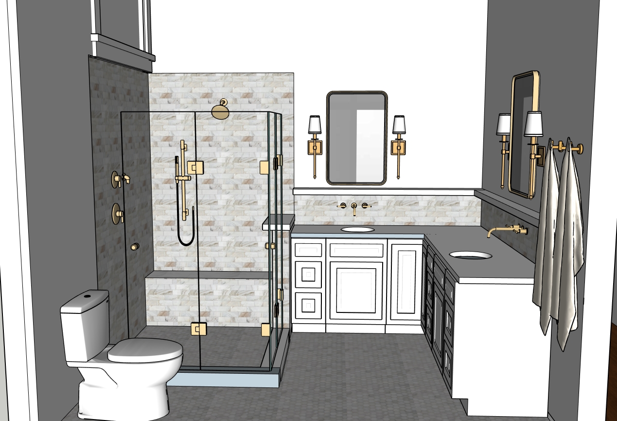 warm lighting window above shower natural daylight white marble