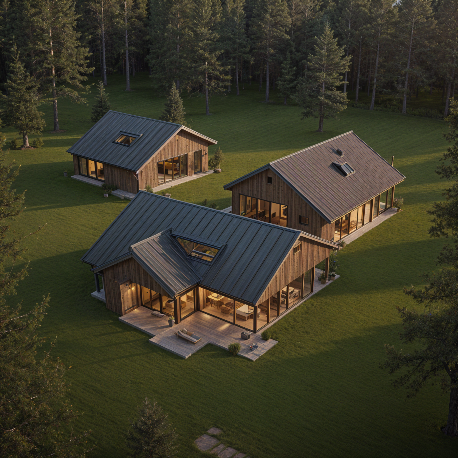 render with a light earth tone cultured stone stone sill black window trim and roof fascia board dark walnut vertical ship lap siding and charcoal color asphalt roofing show bushes and grass in front and tree line in rear show front entry door roof out 10 feet as a hip style roof and all front roofs show as hips show front entry column bases in stone with 16 inch wood columns include right side garage door in render
