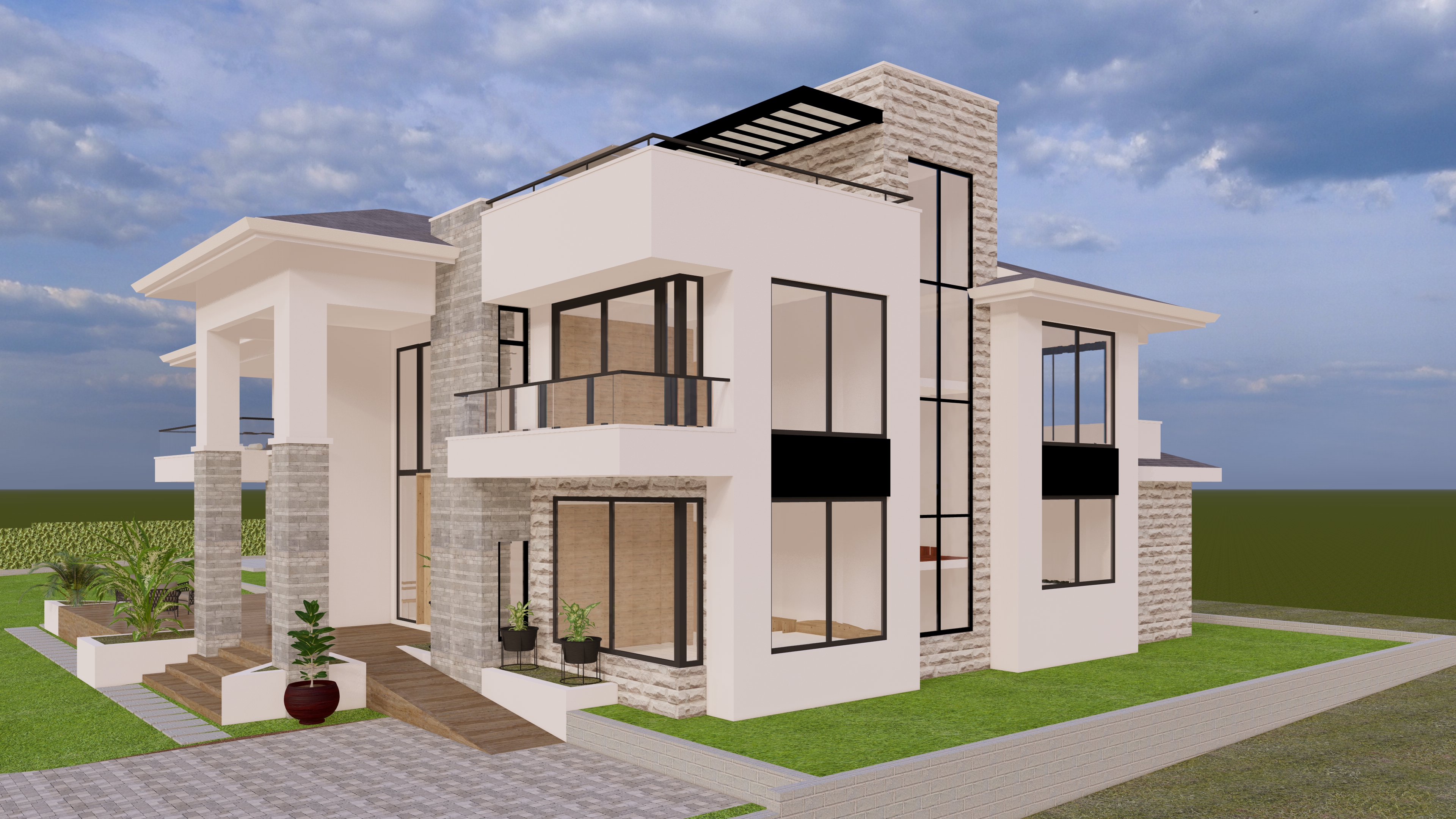 add few trees and vegetation in background to give context blur out interiors