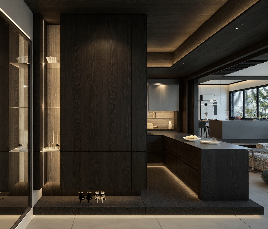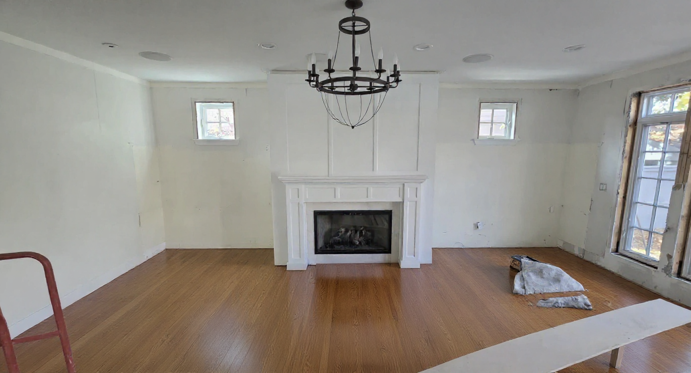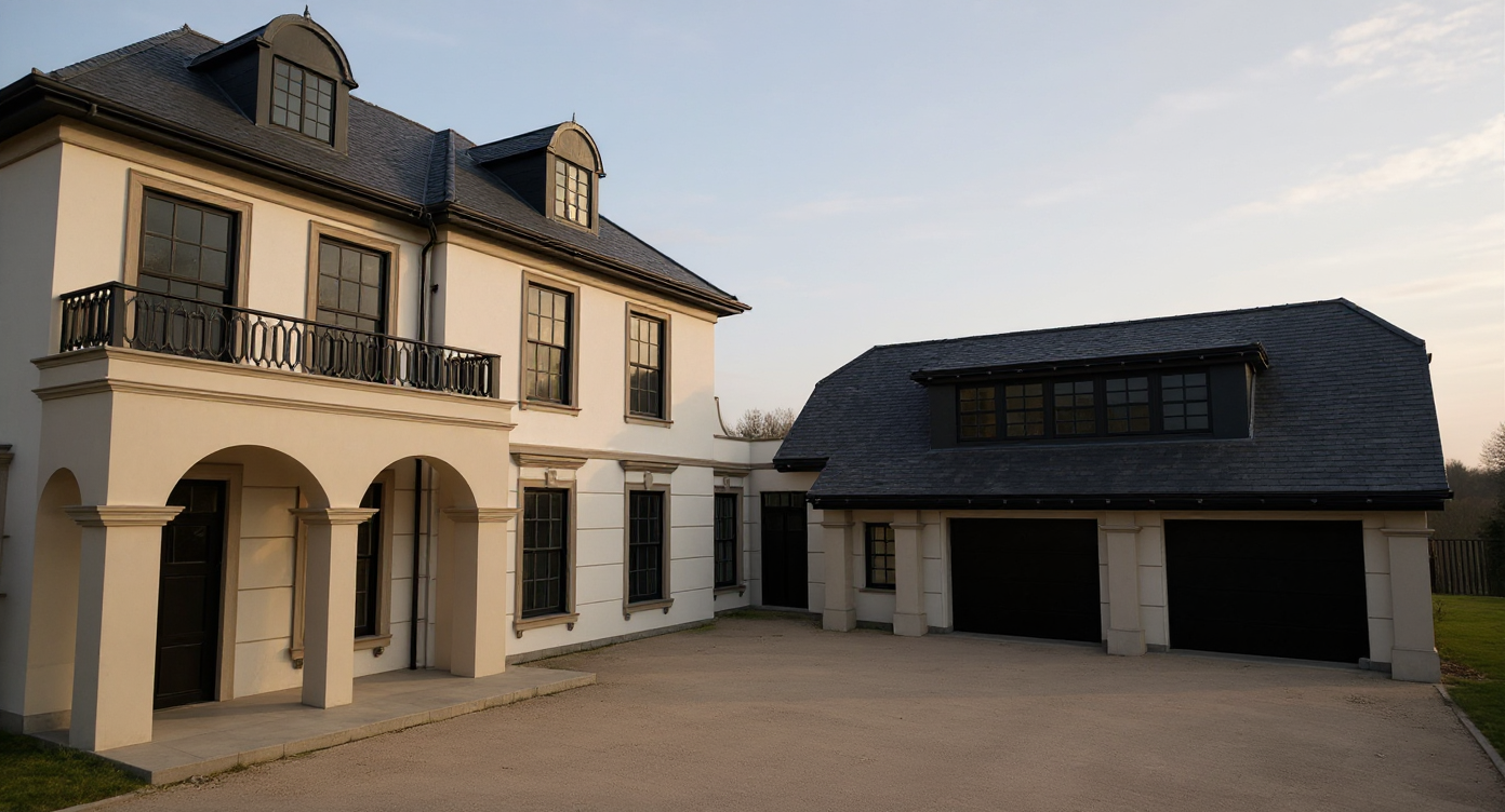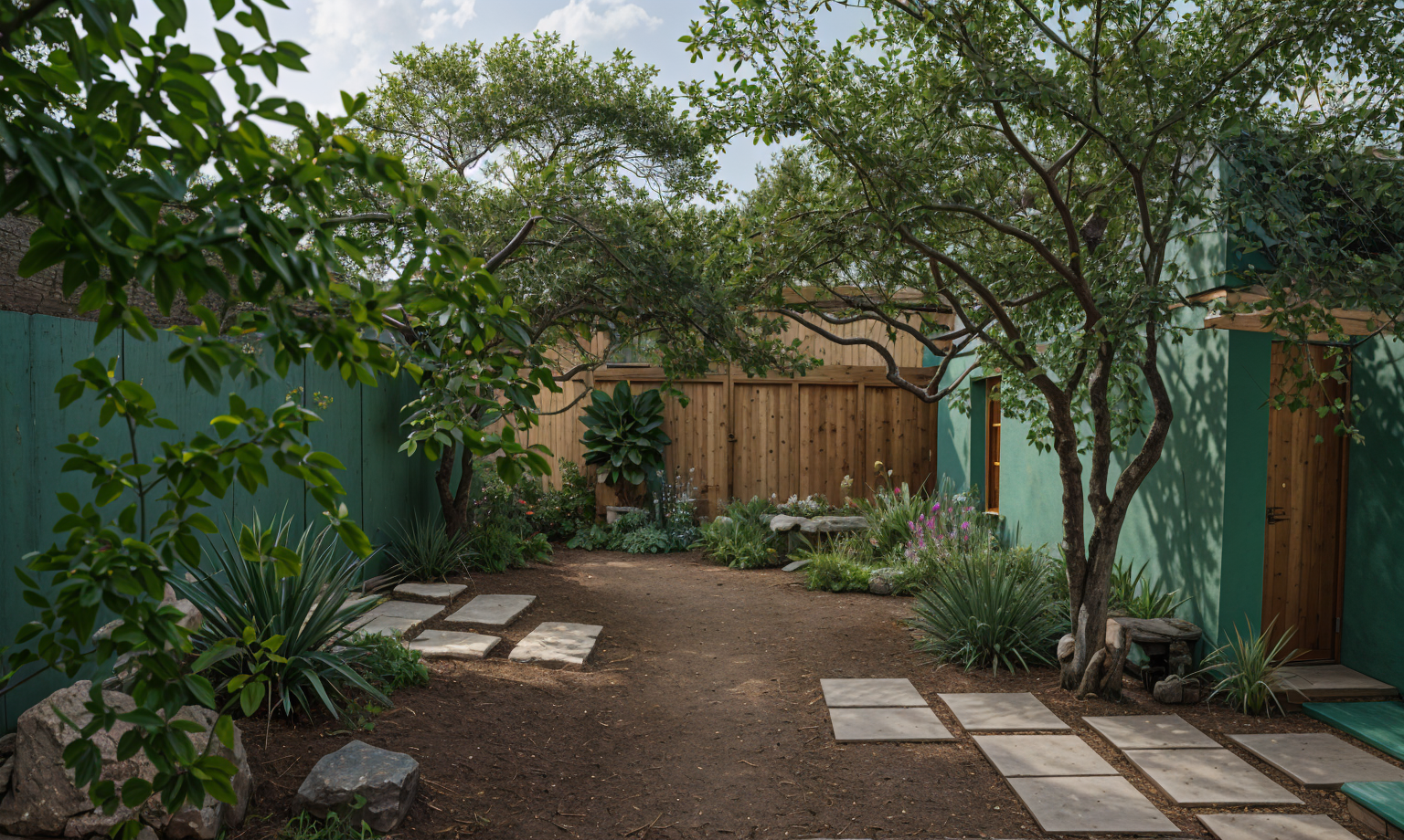 this is a rendering of a storefront renovation make it appear more photo realistic while maintaining color and materials the foreground is to remain brick the main level of the building is to remain orange brick the upper level is stucco that is painted beige add some landscaping to the left of the left storefront render realistic clouds above in the blue sky make the glass a little more reflective and opaque but add interior lighting elements to make the store appear open for business