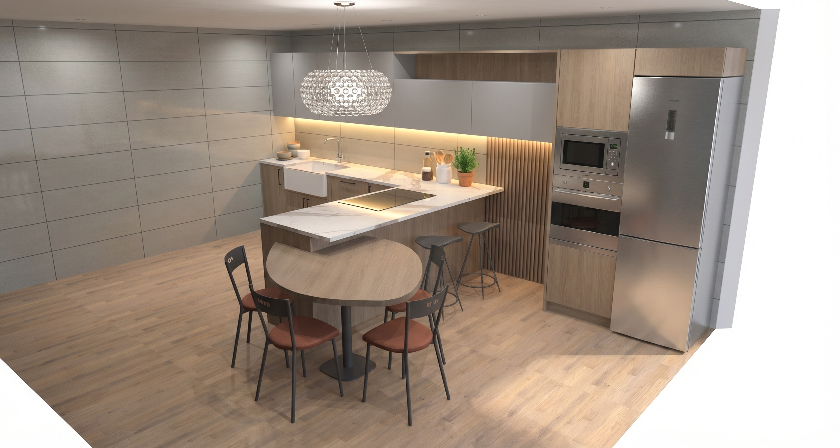 cambiar todas las paredes a un papel que se utilice en cuarto de lavado a rayas combinado rayas blancas y azules cambia todos los muebles a un mismo tono beige suave
