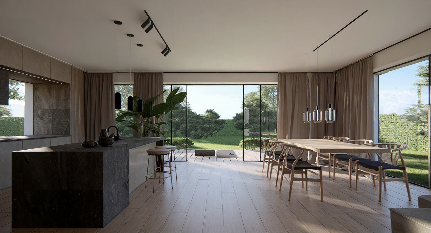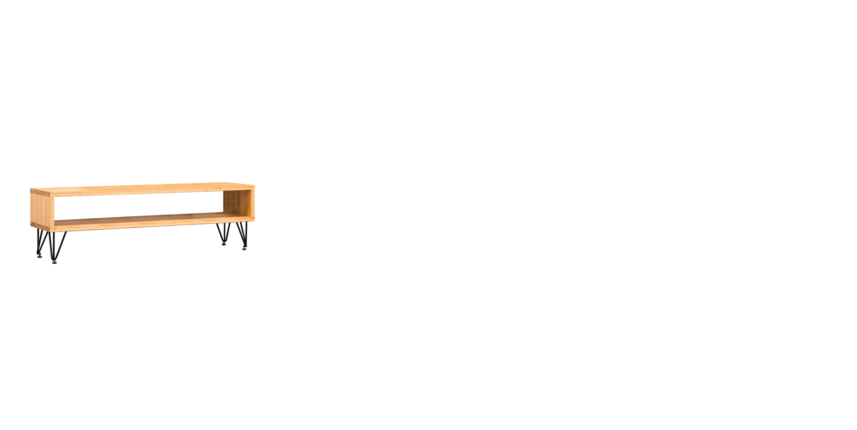 add a modern living room background that complements the light solid wood tv console with metal legs use soft neutral wall tones such as warm white light beige or soft grey paired with light wooden or matte cement flooring to create a clean and contemporary atmosphere allow gentle natural daylight from a nearby window to cast soft realistic shadows that highlight the console s wood texture and sleek design position the tv console on the left side of the image occupying roughly one fourth 1 4 of the frame while keeping the right side as open empty space for visual balance place a few tasteful decorations beside the console for example a tall indoor plant in a ceramic pot to enhance the composition you may also add subtle wall d cor above the console such as a mounted tv to complete the setting do not alter the design color angle or proportions of the tv console maintain consistent realistic lighting shadows and perspective throughout the scene