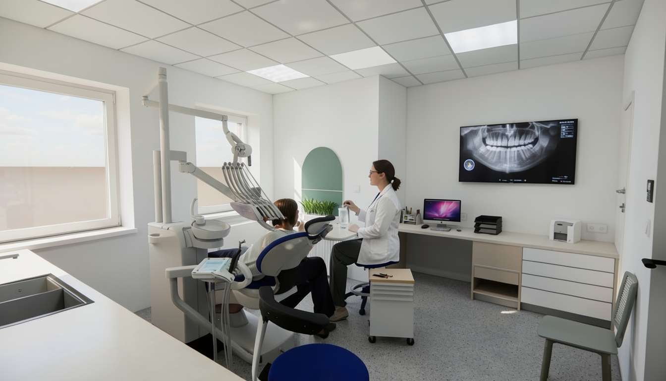 dentist treats patient in chair