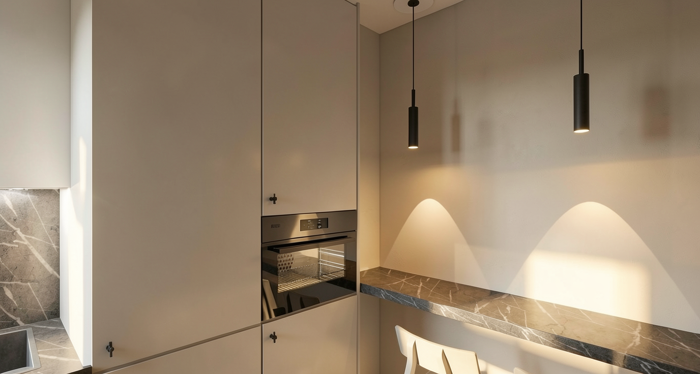 crea una imagen fotorrealista a partir de este sketchup las paredes y techos son de color gris antracita