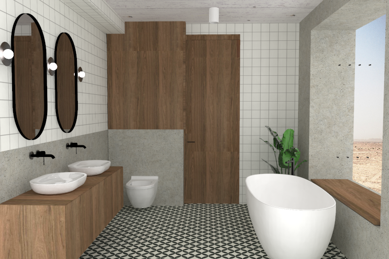 all the tiles have to be matte keep the ceiling lights white add a window frame