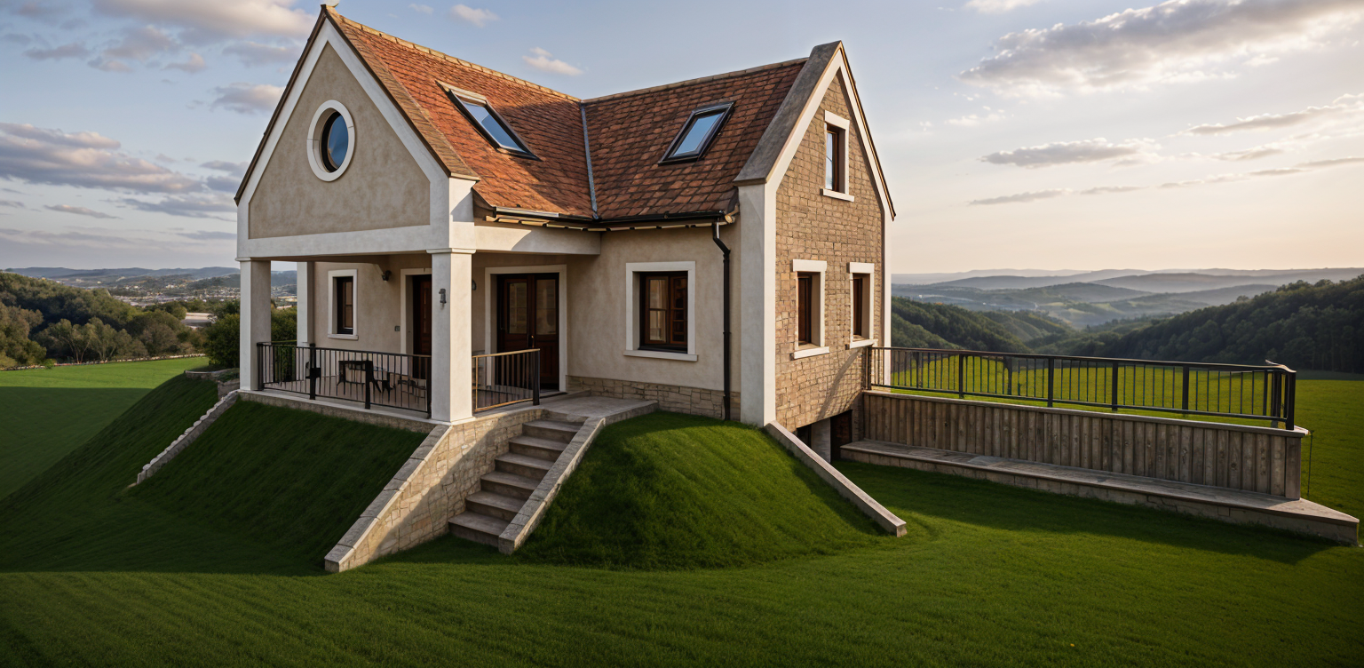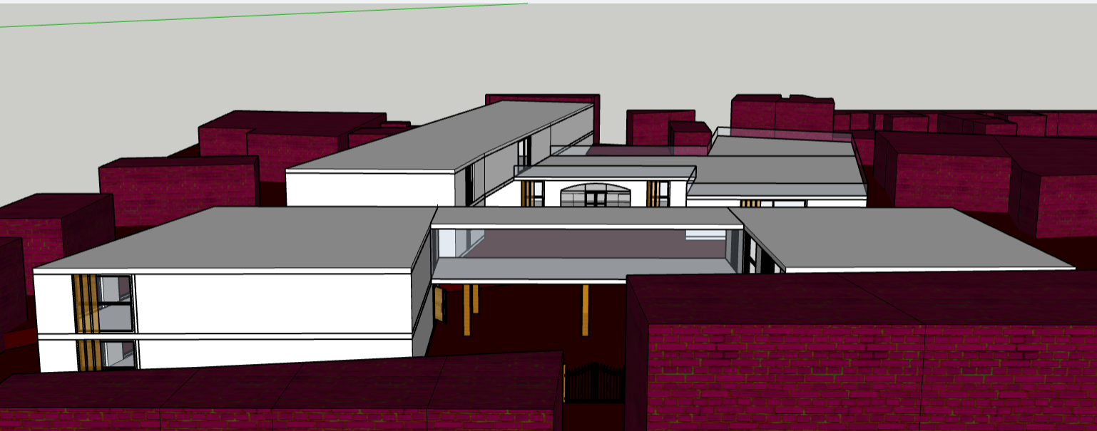 beaux arts exterior shot render with grass on the ground and night shot with lights architecture