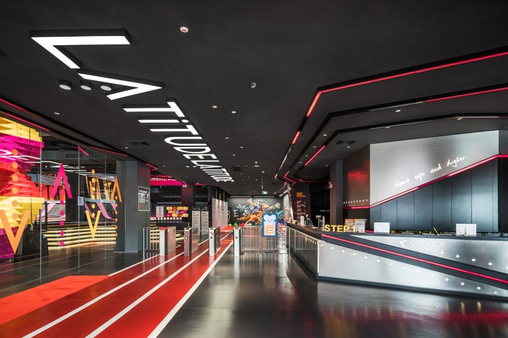 interior shot racing kid cafe chase in yellow red and black color