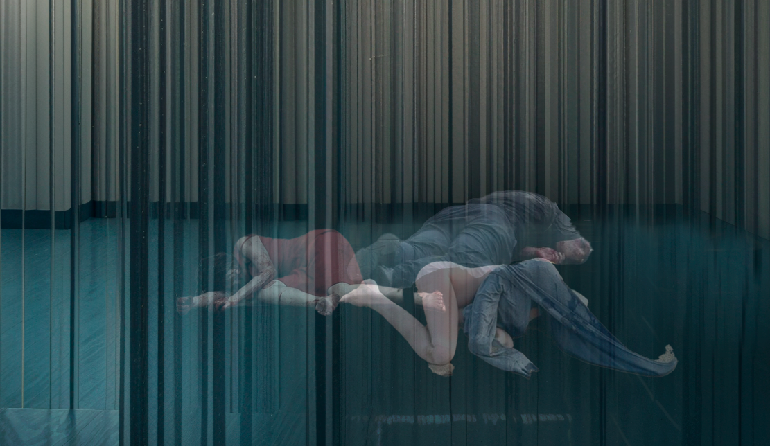 improve the quality of this plastic curtain and place three bodies on the floor behind it