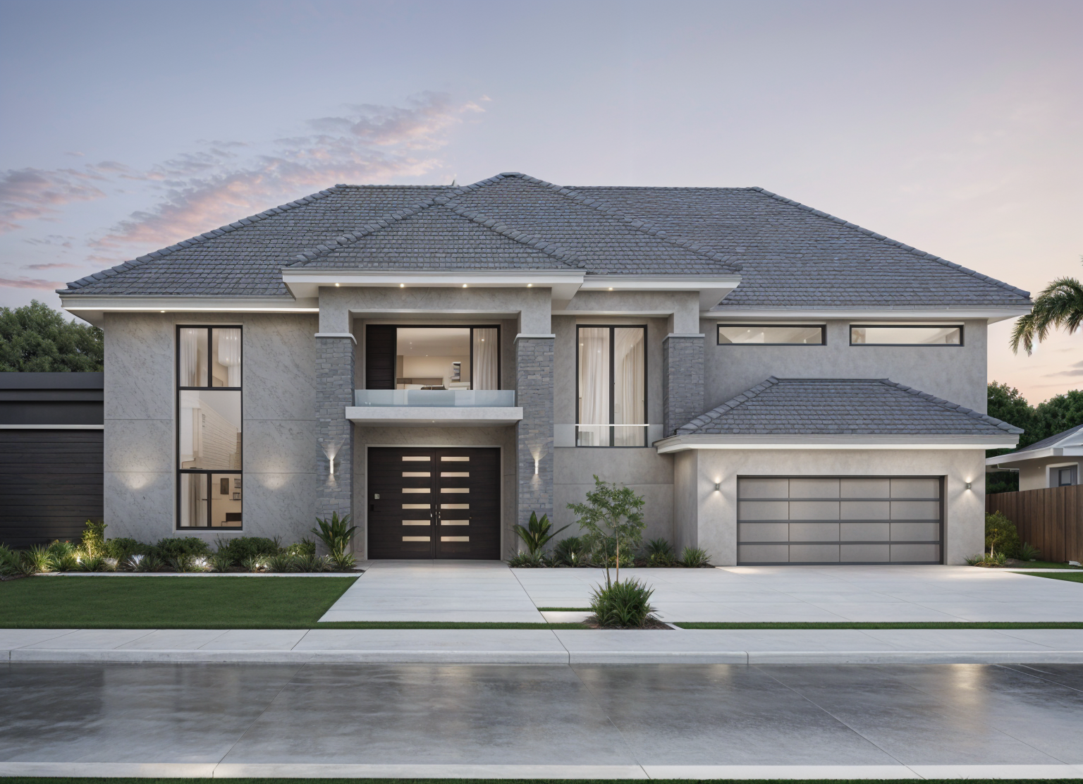 modern exterior shot transitional modern concrete flat tile roofing porcelain large format tile on the lower section south florida landscape architecture