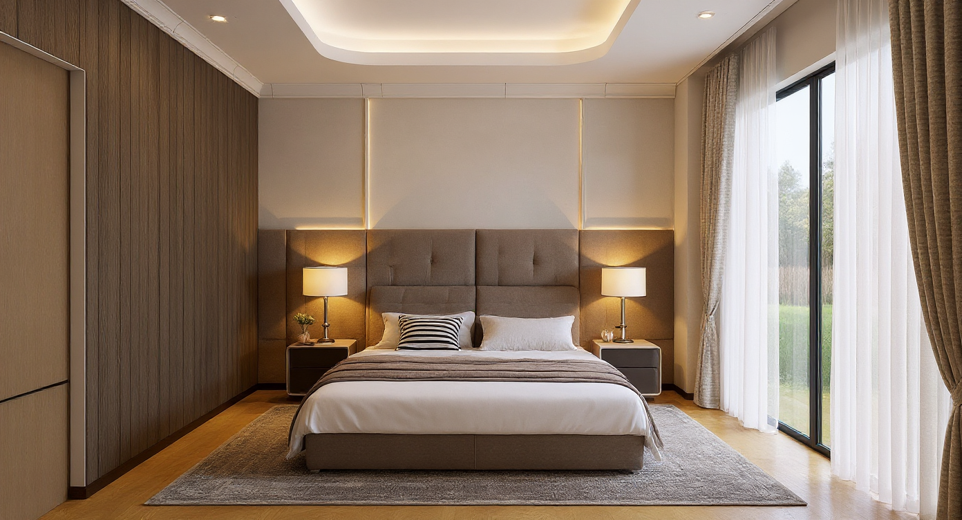 exterior shot render a modern cabin with a dark wooden exterior and sleek glass windows surrounded by lush vibrant green foliage the interior is visible through the large glass doors featuring a minimalist kitchen with light wooden cabinets and a white island add soft ambient lighting that illuminates both the inside and outside the house is surrounded by norwegian woods