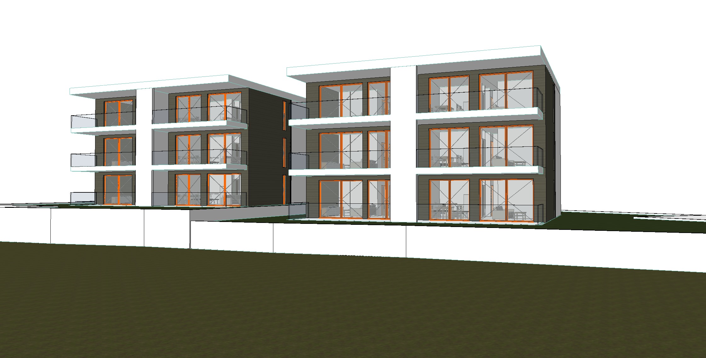 contemporary exterior shot warm facade grass below stone facade woods around architecture