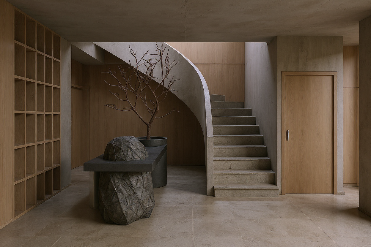 show as inset in nook make shelves and counter smokey travertine walls should be white washed add sink in stainless steel