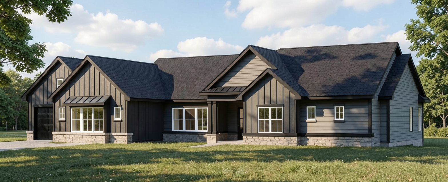 modern craftsman white exterior black windows dark roof