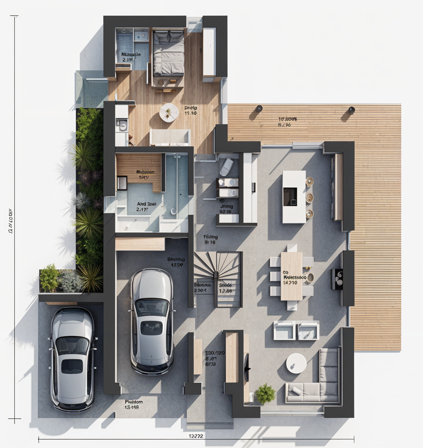 convert this 2d architectural floor plan into a realistic 3d interior perspective use the floor plan as the base geometry show walls windows furniture and lighting according to the plan output should be a photorealistic interior rendering from eye level camera view architecture