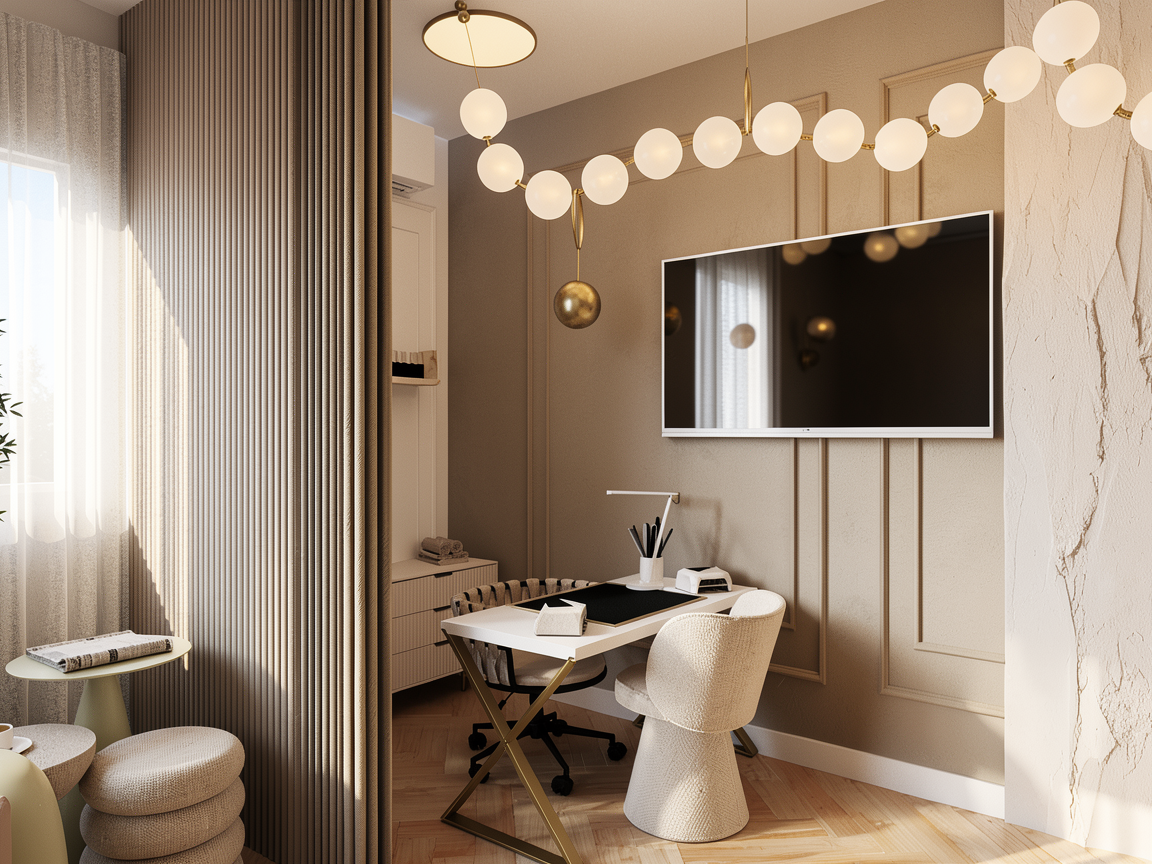 photorealistic rendering of a modern bedroom in a contemporary style at the center of the frame is a double bed with a modern design featuring a minimalist structure and a padded headboard with clean lines the wall behind the bed is enhanced by modern vertical paneling finished in warm tones e g beige dove gray walnut or warm oak harmoniously integrated with the rest of the room the floor is natural parquet laid linearly or in a herringbone pattern with warm wood essences oak or walnut and a matte finish the lighting is designed to create a welcoming and sophisticated atmosphere with warm diffused light 3000k optional led strips integrated into the paneling or recessed spotlights soft shadows and realistic rendering of the materials frontal or slightly perspective shot high definition pbr materials detailed textures contemporary interior design style photorealistic rendering adapt it to the image i uploaded