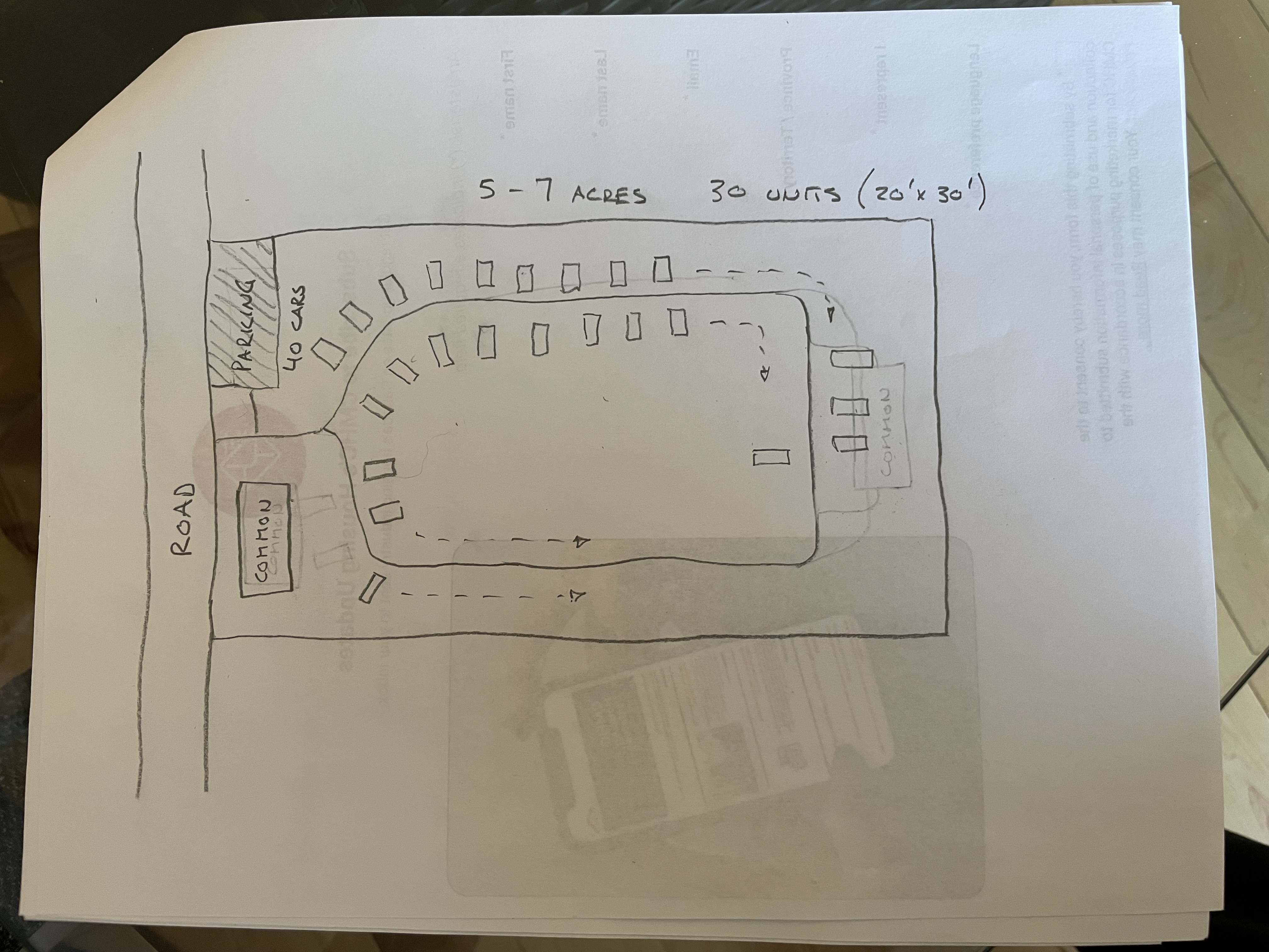 site map for quonset homes add 30 along the curved road add lots of vegetation trees and a central garden area with a dedicated parking lot