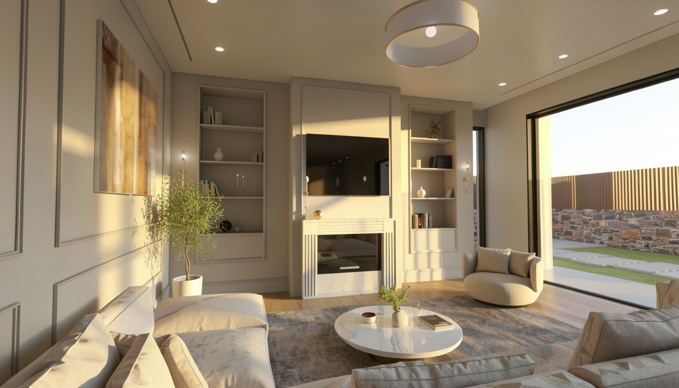 just more realistic with a little more light without change the materials the textures or the furnitures a little more light in the left side next to the tv also there is fabric texture all over the ceil light