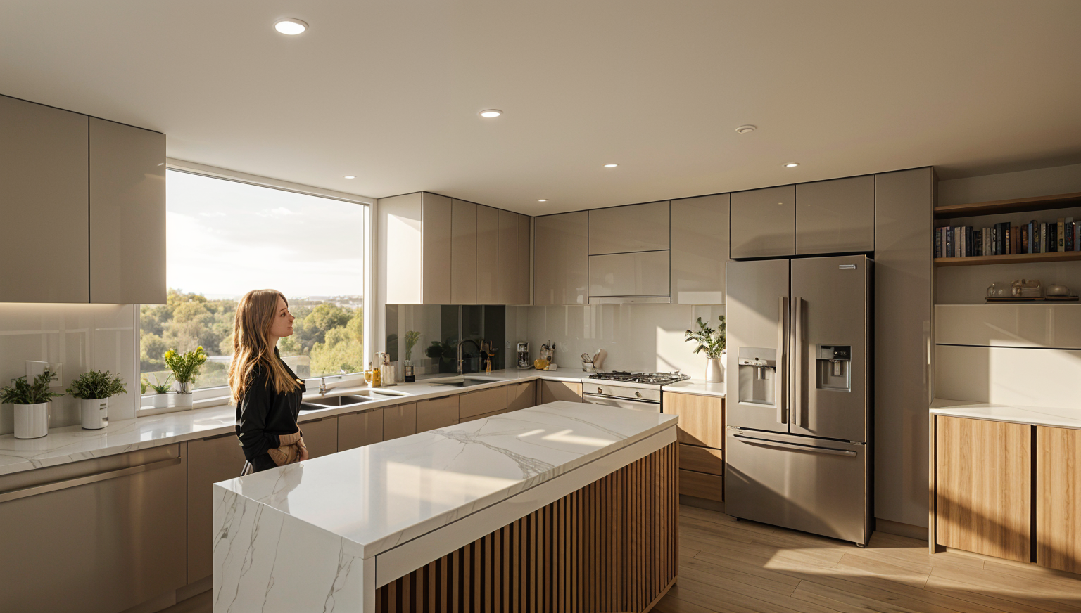 add countertop color and wooden hardwood flooring inside house and make walls solid white architecture