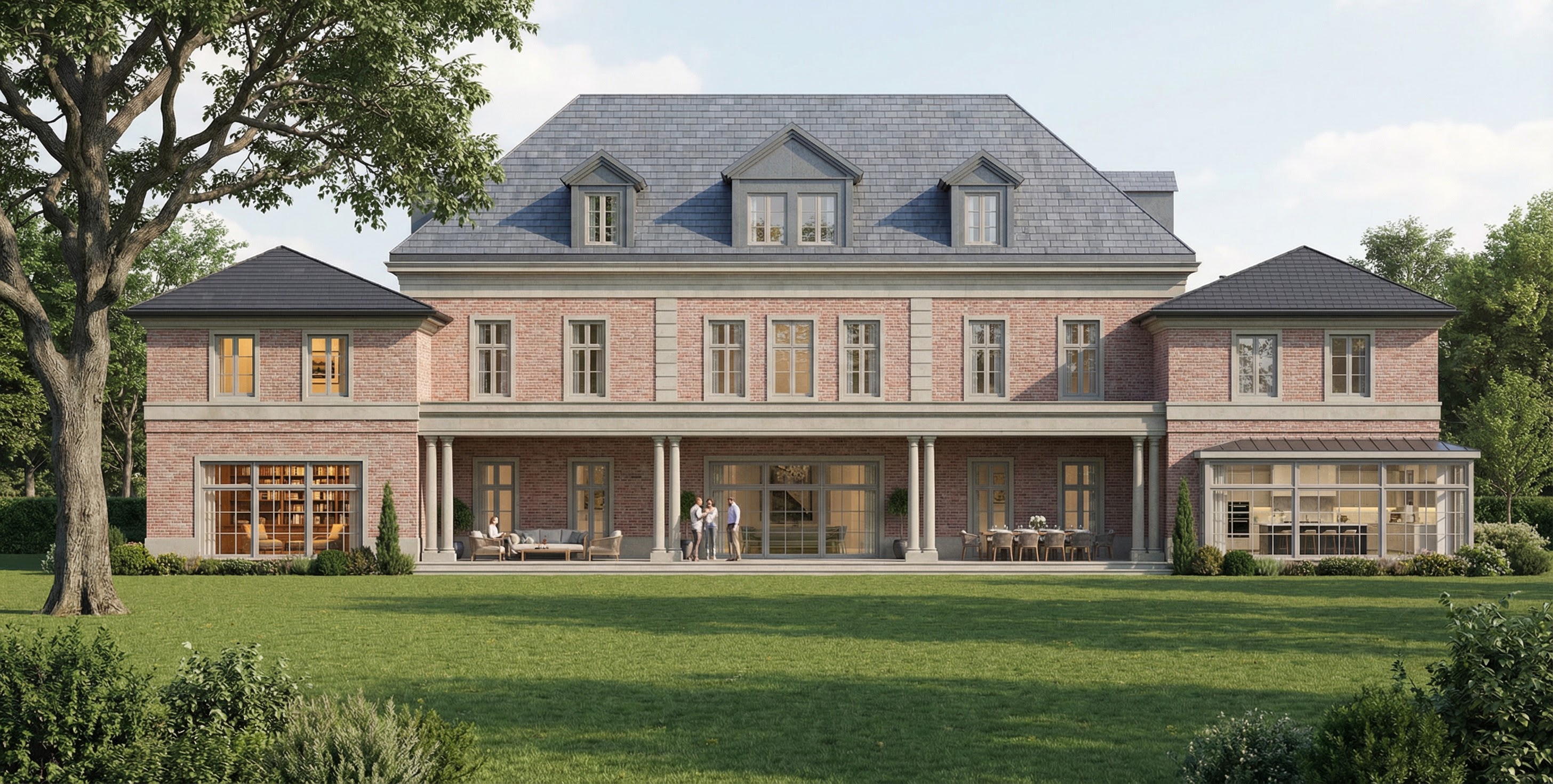 important preserve the existing geometry and the existing context exactly as provided do not modify alter reinterpret add remove scale or reshape any geometry do not change the site surroundings street layout neighboring buildings vegetation or context elements do not modify geometry scale proportions buildings road layout sidewalks or surrounding context in any way do not modify text soft overcast sky noon atmosphere diffused neutral natural daylight with subtle grey tones cinematic architectural mood warm interior lighting 3000k glowing from inside creating strong contrast between cool exterior and warm interior large glass surfaces with realistic reflections soft mirror effect environmental reflections of sky and surroundings important do not add new windows keep the original windowsdo not modify the griddo not add glass surfaces