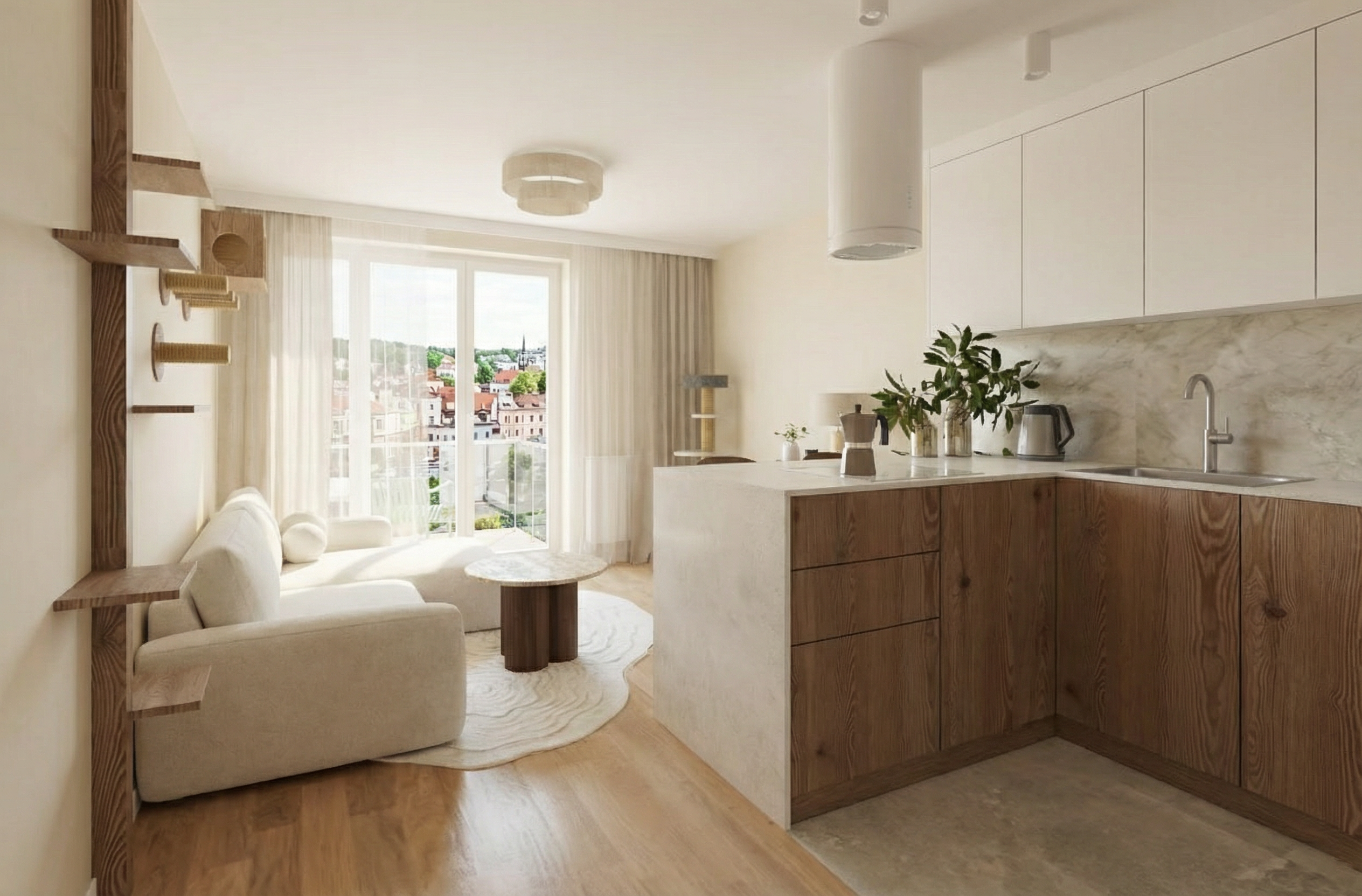 do not change anything walls are cream colour ceiling is white light wood on a floor through the window block of flats view