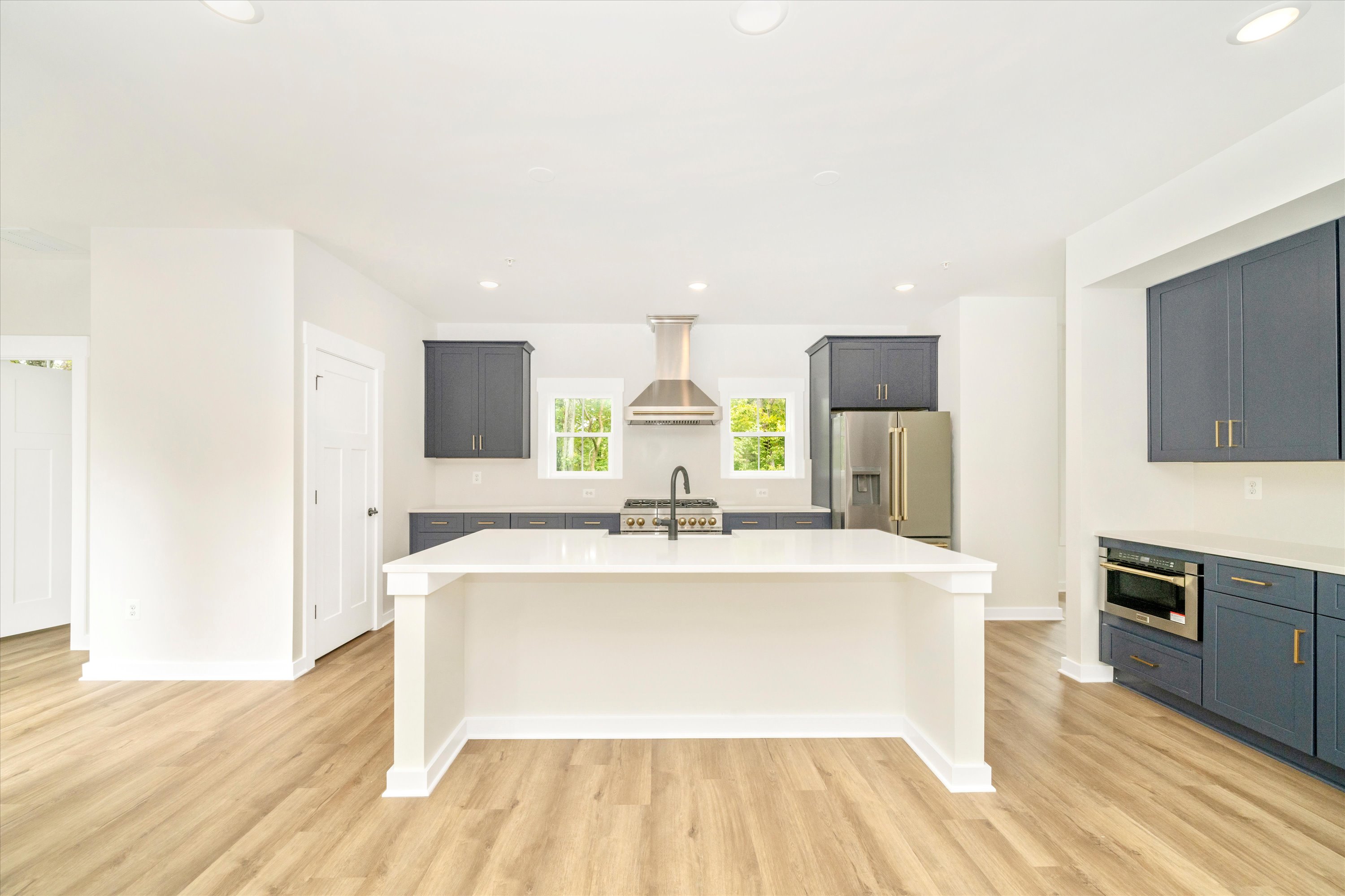 add minimal virtual staging to this photo do not change the cabinets colors or sppliances only add furniture and accessories do not add a table