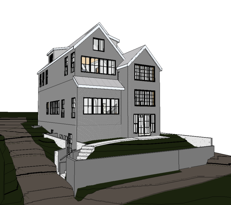 tudor style with painted white brick