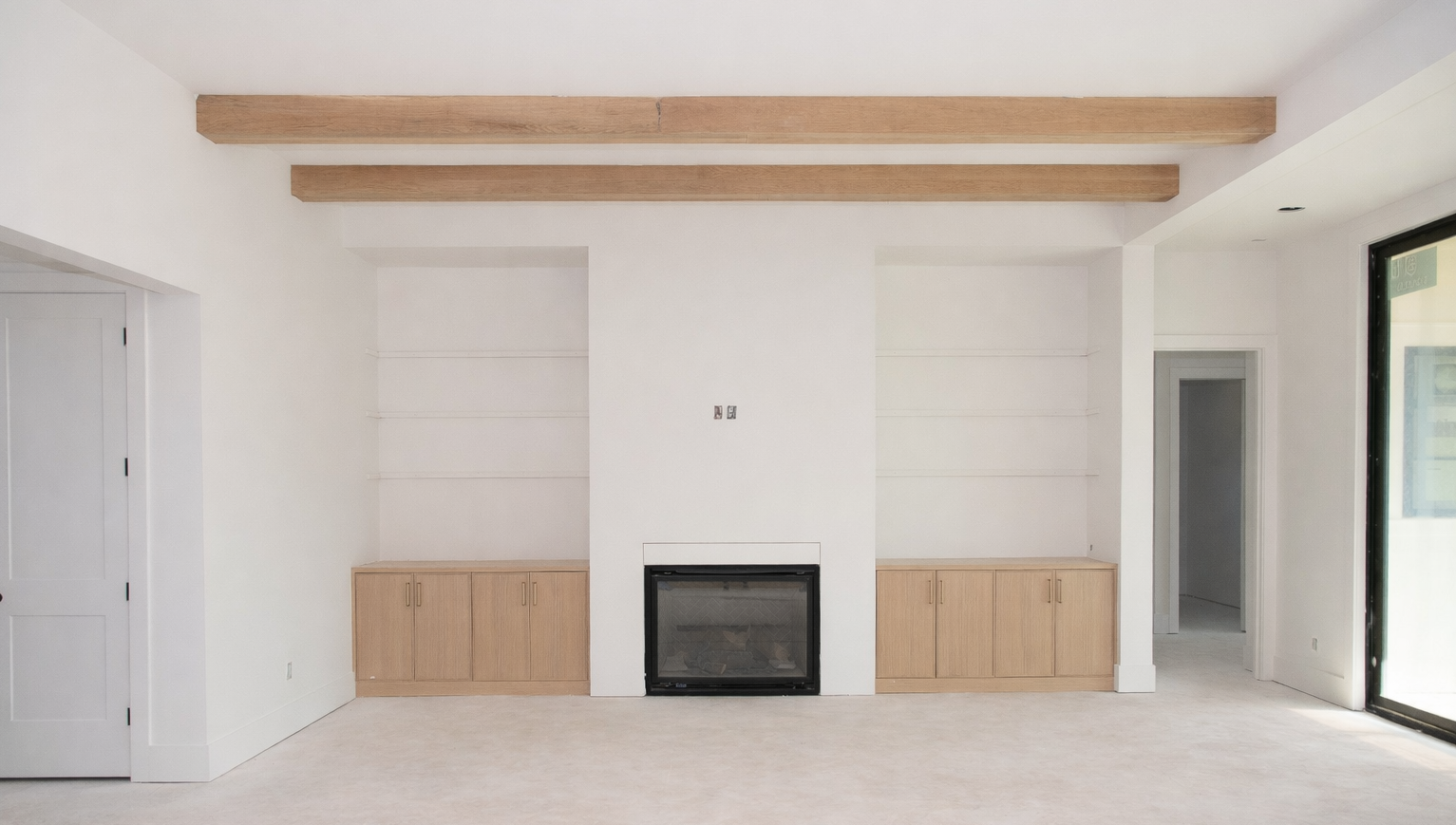 spread out furniture neutral accessories on shelving backlight shelves add tv above fireplace high end