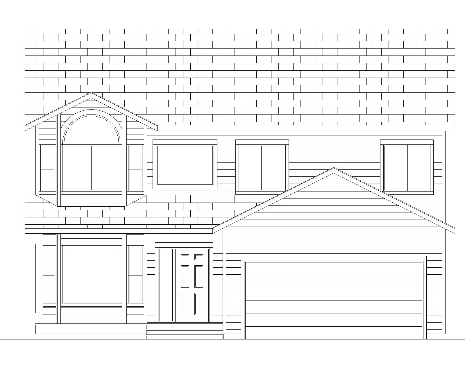 watercolor render of modern home painted with dark grey blue paint and white trim include trees and an alaska like environment in the background simple driveway and walkways in front of the home