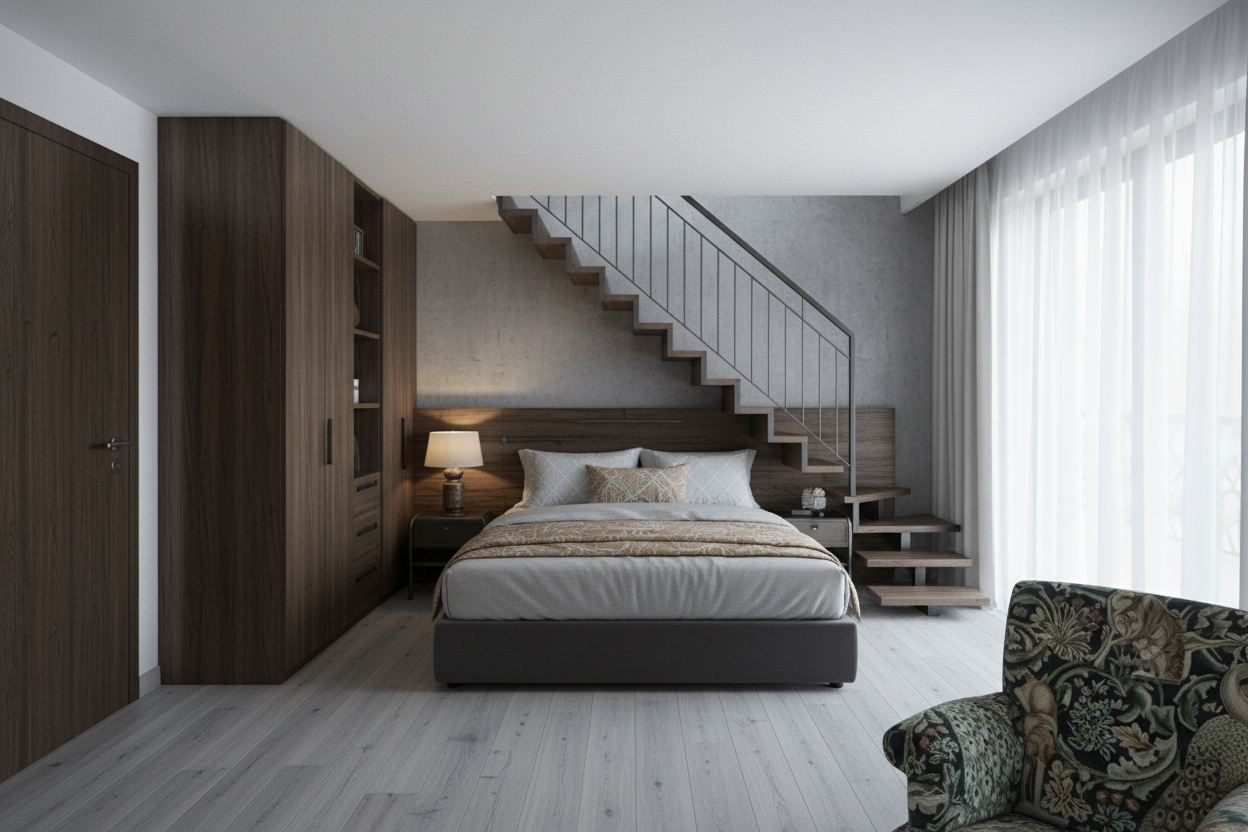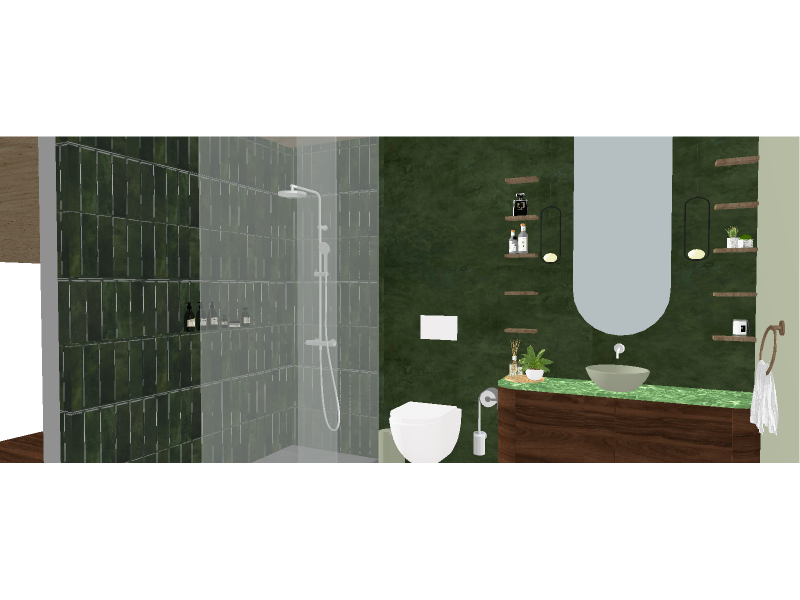 make more realistic this gray on wall is mirror bezind tne camera is just wall green and door wood