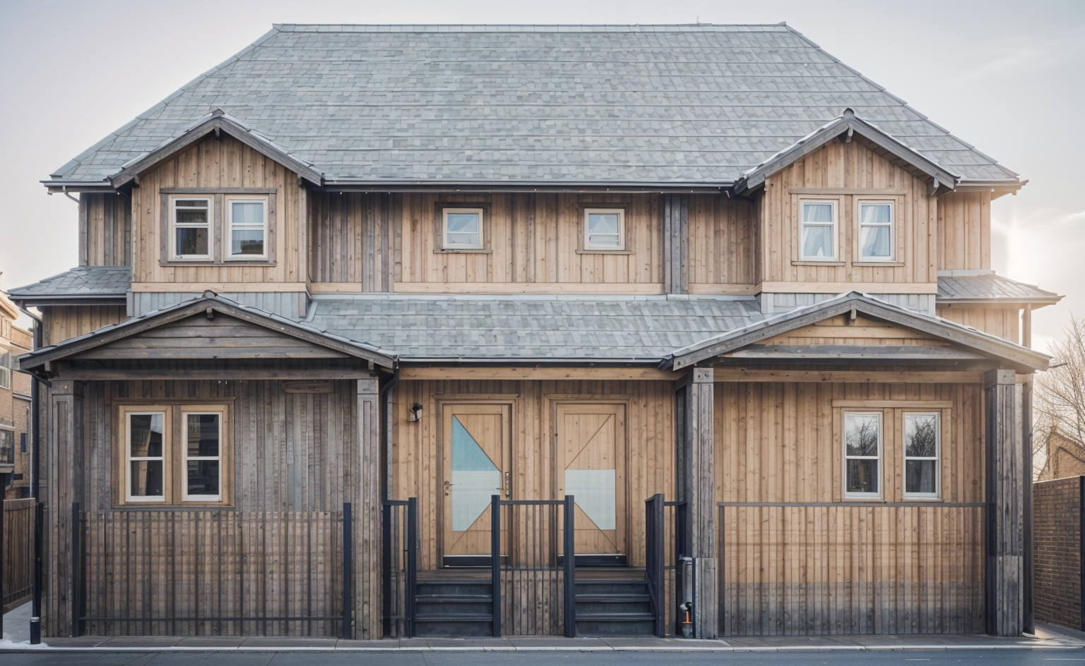 sustainable design exterior shot wood doors architecture
