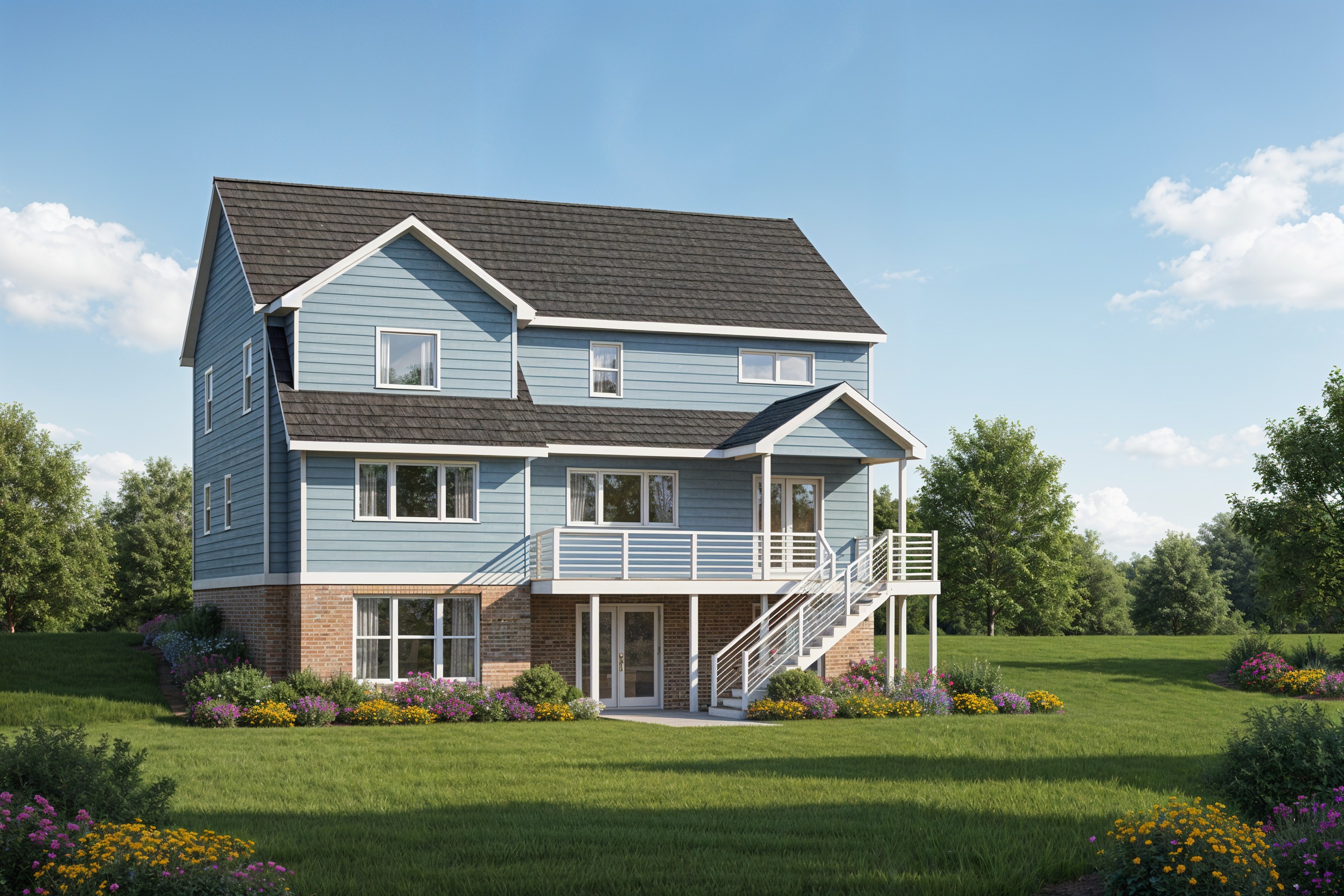 change siding color to light gray add concrete parking pad with driveway running off to the right