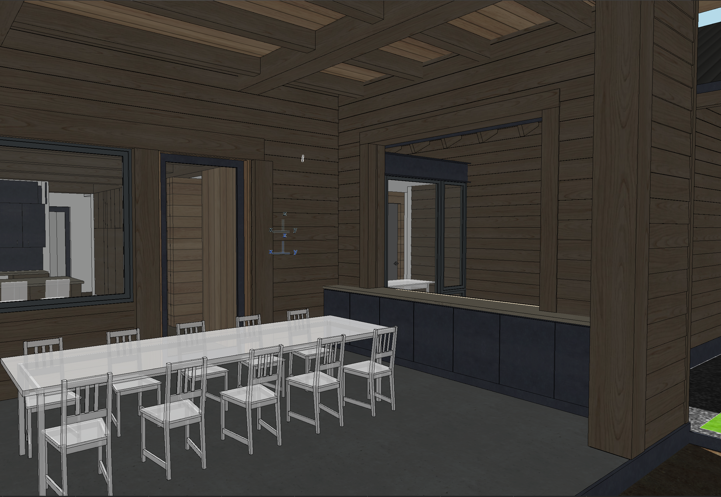 make the outdoor patio furniture a black material the cabinets are blackened steel add a stainless steel gas grill cover in the middle of the counter