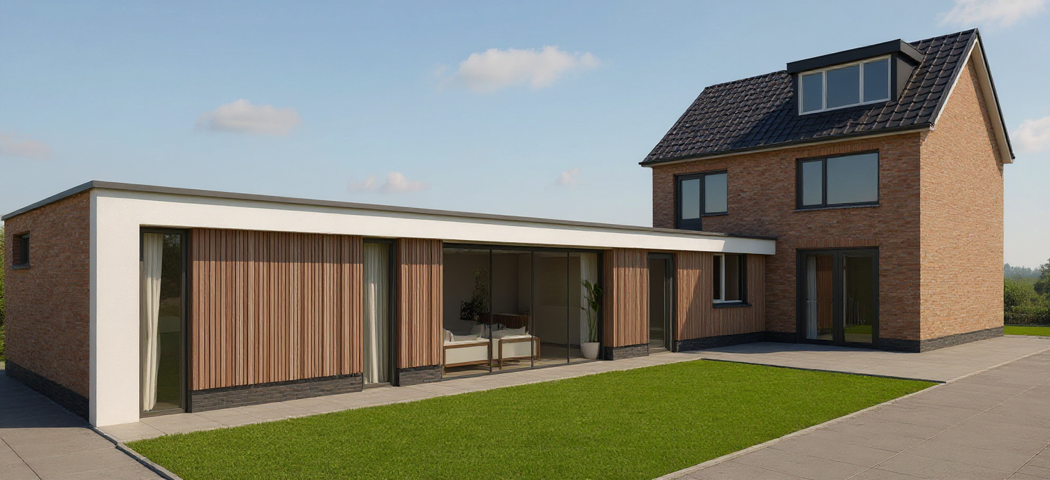 photorealistic architectural rendering of a contemporary school facade frontal elevation view perfectly aligned to the provided 2d architectural drawing follow all lines proportions geometry and colors exactly as shown in the 2d drawing no design interpretation or variation clean modern lines light neutral exterior materials as specified bright natural daylight soft realistic shadows minimal urban context no people ultra high resolution professional visualization quality