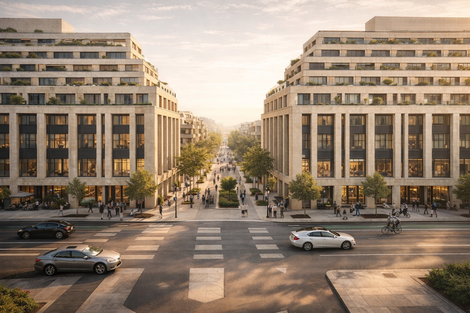 maintain the geometry and improve the quality of details soft morning light in washing through the boulevard