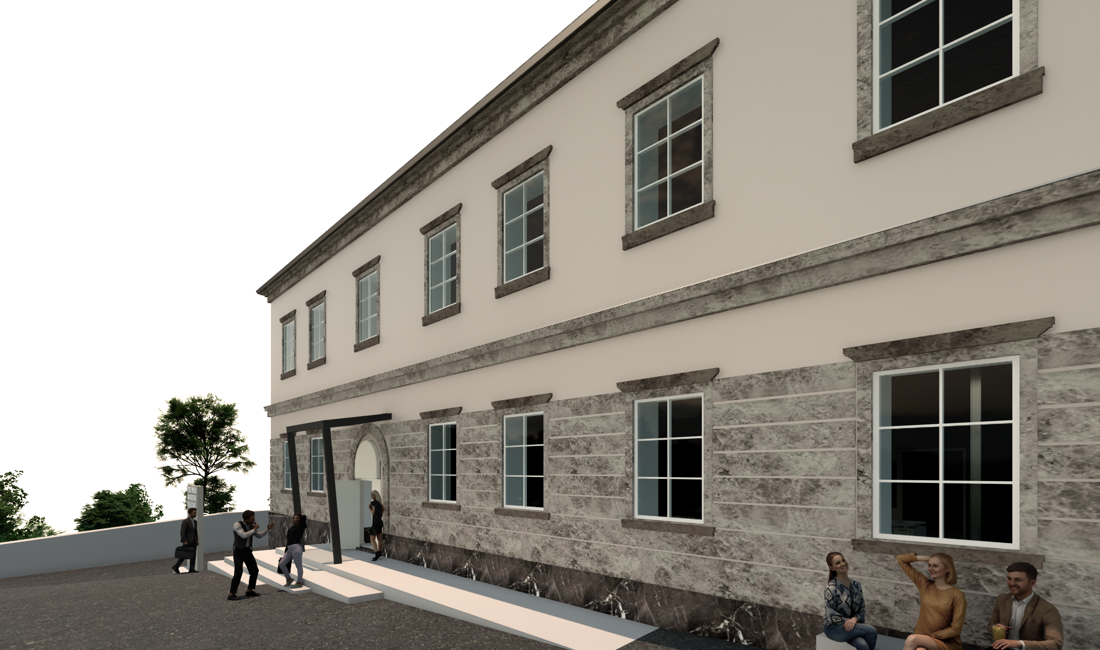 clouds in the sky greenery at the back keep the letters in the picture exactly the same bushes are on the grass sun reflecting in the windows