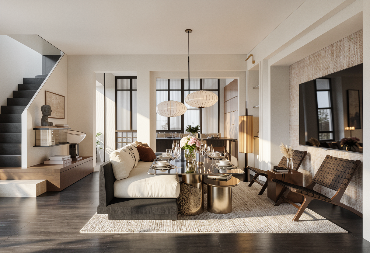 unify the overall visual appearance of the architectural render while maintaining a photorealistic style set all columns and window frames to a dark anthracite color ral 7016 ensuring they remain deep and saturated preserve the roof color exactly as in the original image a light brown without any changes to its hue saturation or brightness do not lighten or darken the roof ensure consistent materials textures lighting and shading across all surfaces remove any visible signs of manual color editing or patchy areas seamlessly blend all elements so the image looks natural cohesive and professionally rendered maintain realistic shadows and reflections the final result should be a unified architectural visualization with accurate colors no visible edits and no unwanted over brightening of dark elements